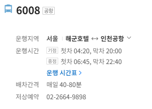 인천공항 6008번 리무진 버스 시간표 가격 노선