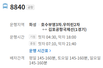 8840번 버스는 2024년 6월 기준으로 다음과 같이 운행됩니다: